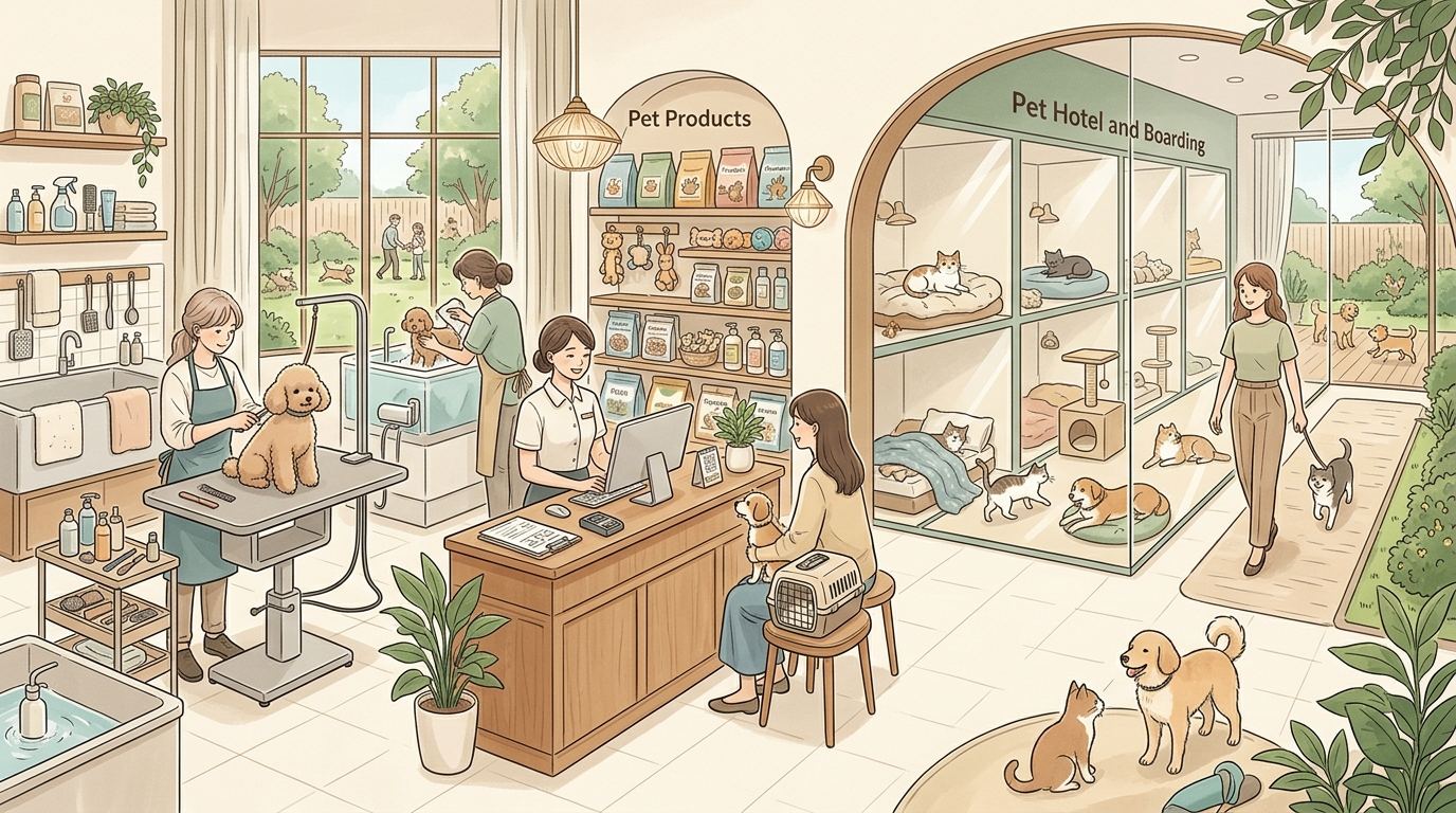適合同時經營美容、住宿、房型管理與照護交接的門市。